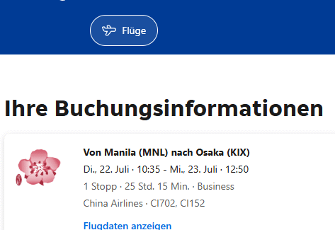 Am 17. Juli 2025 habe ich folgende Flüge/Reisen gebucht. Der eine Flug ging am nächsten Tag 18. Juli 2025 von